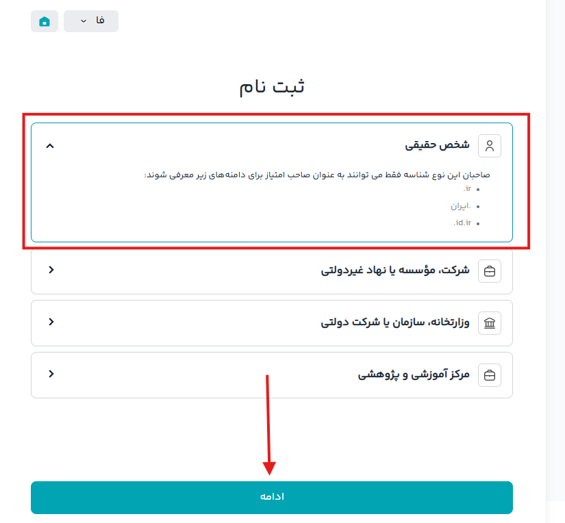 در مرحله ی اول نوع شناسه ی خود را انتخاب و بر روی کلید تکمیل فرم و دریافت شناسه کلیک کنید.